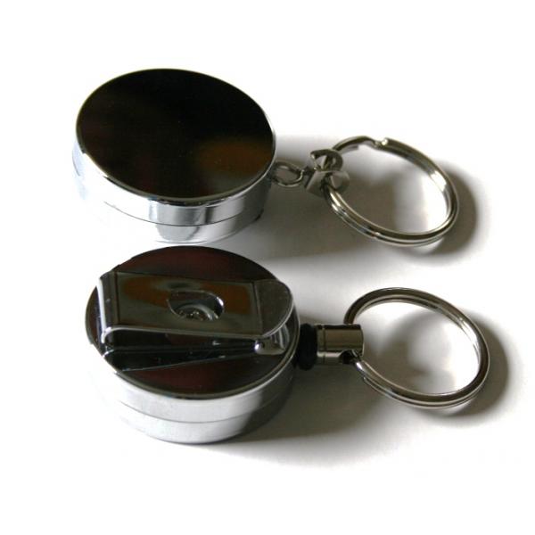 Badge Reel, Chrome, 50mm clip on with “O” Ring, with heavy duty high tensile steel wire pull (suitable for a bunch of keys)