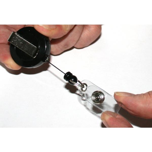 Economy Badge Reel-BLACK with Strap Clip. Has a stronger spring and slightly thicker pull cord than the cheaper LDB series